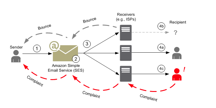 Amazon 간편 이메일 서비스(SES)는 자신의 이메일 주소와 도메인을 사용하여 쉽고 비용 효율적인 방식으로 이메일을 주고받을 수 있는 이메일 플랫폼입니다.예를 들어 특별 행사 등의 마케팅 이메일, 주문 확인 등의 거래 이메일, 뉴스레터 등의 기타 유형의 서신을 보낼 수 있습니다. Amazon SES를 사용하여 메일을 수신하는 경우 이메일 자동 응답기, 이메일 수신 거부 시스템, 수신 이메일에서 고객 지원 티켓을 생성하는 애플리케이션과 같은 소프트웨어 솔루션을 개발할 수 있습니다.