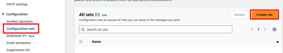 - SES configuration set 은 이름만 지정하고 나머지는 default 로 사용