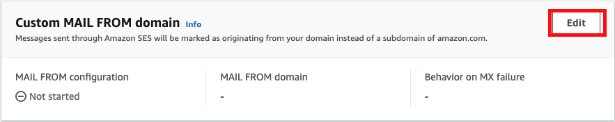 Custom MAIL FROM domain 설정의 Edit 버튼으로 설정 페이지로 진입 한다.