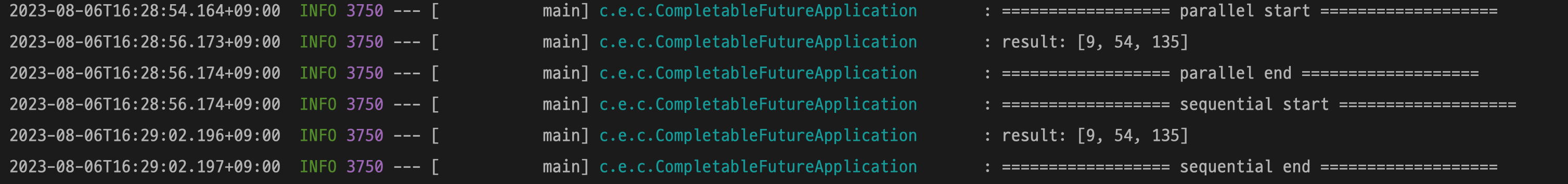 List<Integer> sequential = completableFutureExample.taskSequential(list);