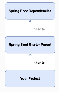 Spring Boot 프로젝트를 생성할 때 spring-boot-starter-parent 를 프로젝트의 pom.xml 혹은 build.gradle 의 부모로 사용한다. spring-boot-starter-parent 를 추가한 후 프로젝트는 spring-boot-starter-parent 에 지정된 기본 빌드, 종속성 및 구성을 상속하므로 수동으로 지정할 필요가 없다.