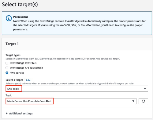 현재 생성하고 있는 EventBridge rule 을 SNS topic 에 연결합니다.