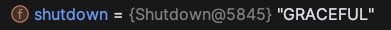 애플리케이션 로그 상으로 기본 포트 설정과 shutdown 정책이 적용되었음을 알 수 있다.