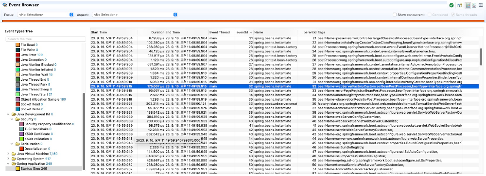 JFR(Java Flight Recorder)은 JVM의 일부 모니터링 도구이다. Java는 다양한 메트릭 및 진단 데이터를 수집하고 이를 분석할 수 있는 도구를 제공한다. JFR을 통해서 Startup 추적 데이터를 확인하려면 FlightRecordingApplicationStartup을 사용해야 한다.
