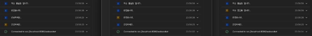 각각의 세션에서 메시지를 전송하면 다른 모든 websocket session으로 메시지가 broadcasting 된다.