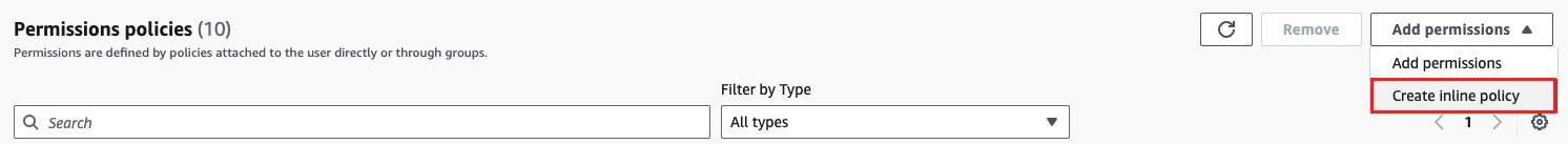 AWS 콘솔의 해당 IAM 계정에서 IAM > Users > 해당 계정 > Add permissions > Create inline policy를 통해서 추가한다.