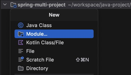 root 프로젝트에서 Cmd + n 단축키를 통해서 Module을 선택하여 하위 프로젝트를 생성할 수 있다.